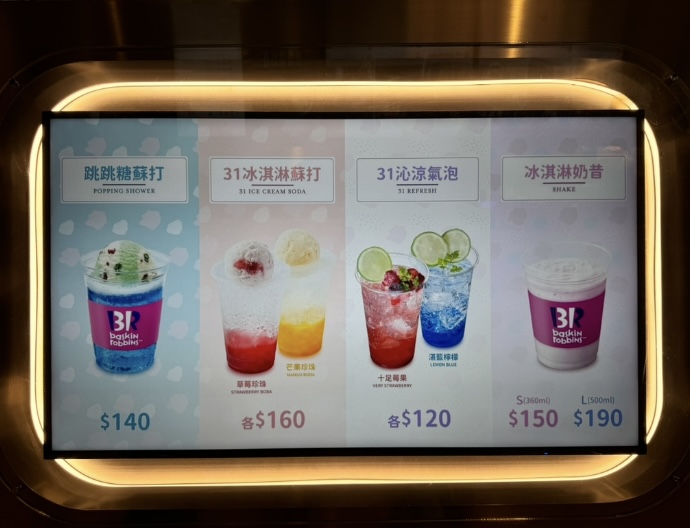 色彩呈現繽紛的31冰淇淋蘇打,則加入台灣在地的草莓/芒果珍珠,是台灣限定的口味!