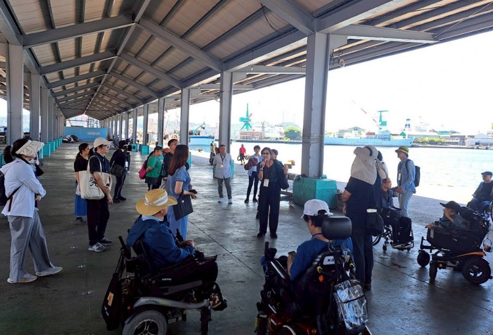 活動從一場田野踏查開始。學員們走訪基地周邊,一邊體驗日常環境的高低差與無障礙設施的不便,另一邊也陪著身心障礙者,走進正濱漁港的街道與海風之中。對有些人而言,這只是一次日常散步;對另一些人來說,卻是難得能以「旅人」的姿態,透過相對平順的路徑參與城市風景的時刻。這趟踏查,不只看見障礙,更是一場學員們彼此交換視角的同行。
