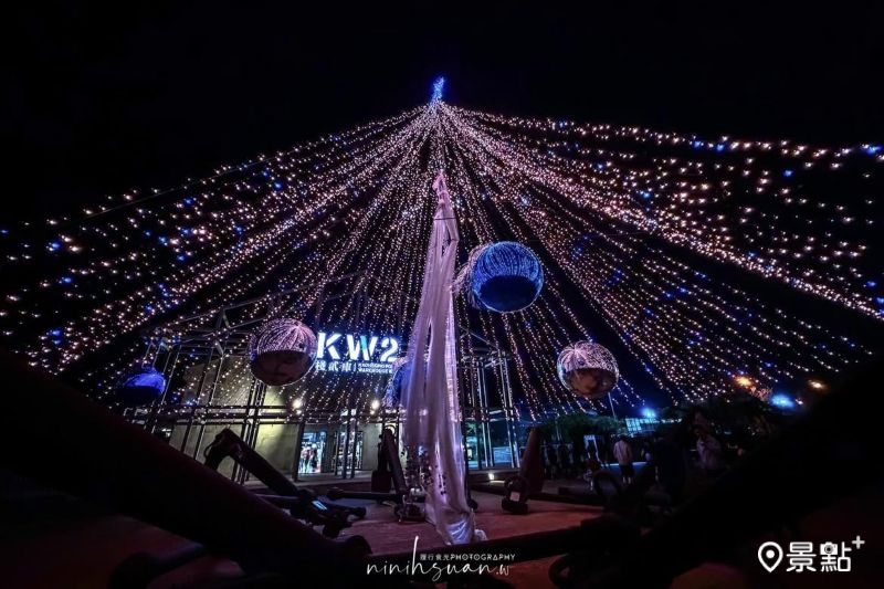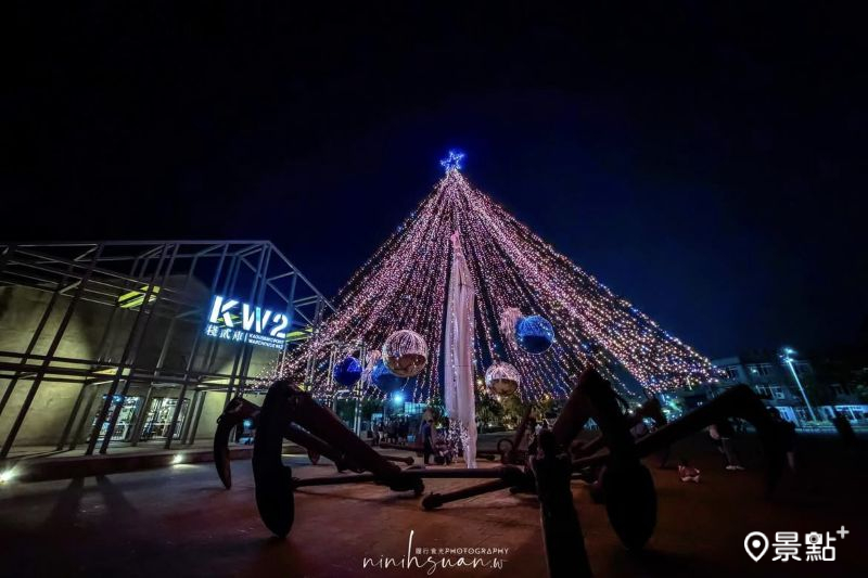 全台唯一漂浮聖誕樹在這裡!「棧貳庫KW2」以航運地標結合8件大型「錨碇」裝置,打造出獨一無二的漂浮聖誕樹,快將本篇高雄7大聖誕樹一同筆記起來,前往打卡節日氛圍場景!