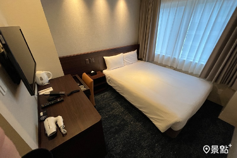 本町飯店的房型以1至2人房為主,提供一大床或兩小床選擇,空間雖不算寬敞,但機能完整。房內備有浴缸、書桌、電冰箱、熱水壺與掛衣架,整潔度與採光表現皆在水準之上。