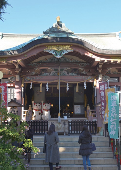 淺草寺之外,這一帶如果拜月老求姻緣、拜財神爺求財運, 那麼就一定要到位於淺草的今戶神社,能夠讓兩個願望一次滿足。這裡供奉著應神天皇、 伊奘諾尊和伊奘冉尊,傳說中伊奘諾 尊和伊奘冉尊是最早結為夫妻的神 明,因此人們將其供奉為締結良緣及 求好姻緣的象徵,是日本女性們趨之 若鶩的求桃花景點。