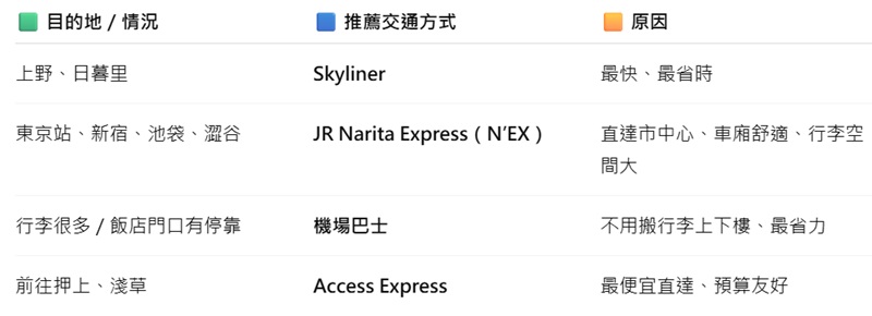 新手前往東京,只要事先掌握行李規範、避免攜帶禁用物品,再按照自身行程選擇最合適的交通方式,就能讓旅程從抵達那一刻起順順利利。無論選擇速度最快的 Skyliner、直達性最佳的 Narita Express,或是價格親民的 Access Express,每種交通都有其適合族群。尤其最新推出的「掃臉進站」服務,大幅提升便利性,減少排隊與等待時間,對於行程緊湊或帶著行李的旅客都相當友善。準備好行李、確認好票券後,就能輕鬆前往東京,順利的出發,旅行就成功了一半!