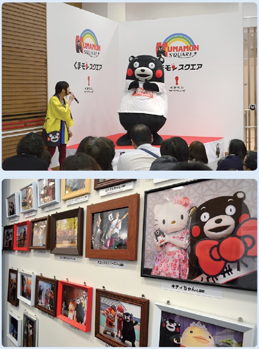 位於鶴屋百貨東館一樓有一處熊本熊粉絲的必訪之地 ─ Kumamon Square。除了各種熊本熊周邊商品, 這裡還是熊本熊部長辦公室所在地;更讓人興奮的 是有機會可以見到熊本熊本尊,只要在官網公布的 時間來到這裡,熊本熊便在眾人的簇擁下進入會場 與大家互動喔!
