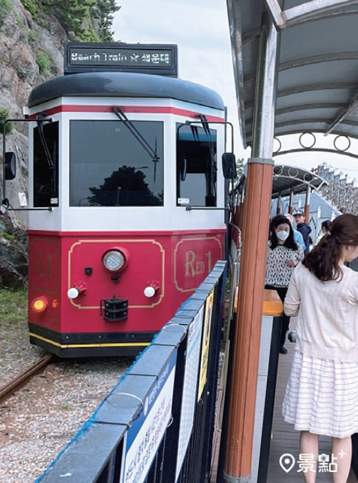 海雲台藍線公園提供兩種觀光列 車,行走於地面上的海岸列車(해변열차),所有座 位都面向大海,而行走於高架軌道的天空膠囊列車 (스카이캡슐),可以從空中欣賞海雲臺美景。
