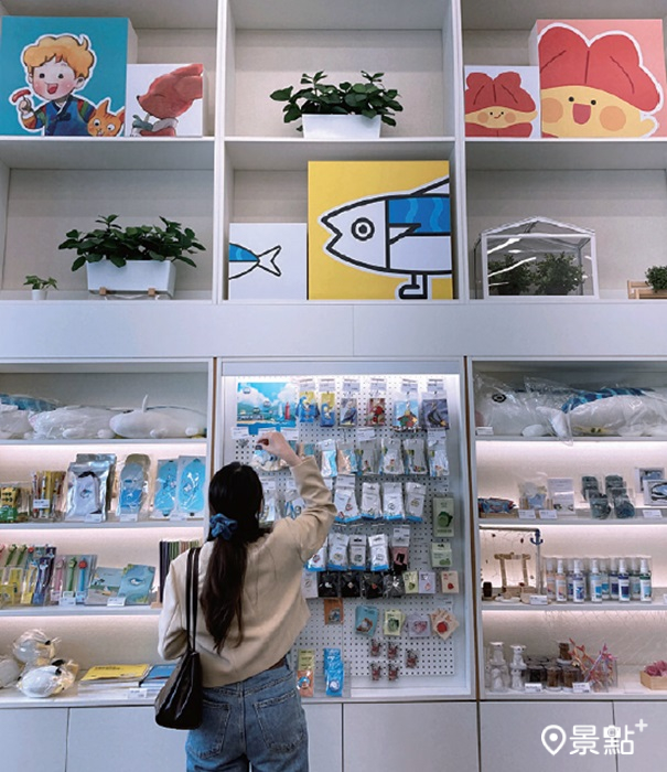 雖然在尾浦站和青沙浦站都有藍線公園紀念品店, 不過青沙浦站的店舖更大,出站前記得去逛逛。在 這裡可以買到許多相關紀念品,像是天空膠囊列車 的明信片、青沙浦紅白燈塔的磁鐵、海雲台藍線公 園的透卡……都是以手繪圖案方式呈現,有的文 青、有的可愛、有的復古,讓人很想全都帶回家。