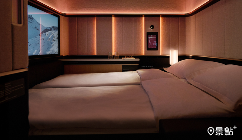 在頭等艙方面,瑞航將原有的8個座位縮減為3個座位,設置成私密性極高的尊享套房,配備滑門、私人衣櫃、43英吋螢幕等,享受直比陸地上的五星級飯店。商務艙同樣帶有可關閉的滑門,升級為套房的概念,甚至提供「雙人套房」選項,行前須特別預訂。
